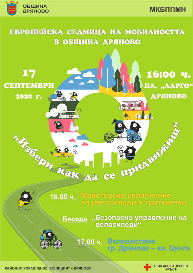 В тази връзка Община Дряново кани всички желаещи на 17 септември от 16:00 ч. на Ларгото. Там ще се проведе състезание по майсторско управление на велосипеди и тротинетки, като са осигурени много награди. Освен това експерт от Районно пътно управление – Дряново ще изнесе беседа, запознавайки децата с най-важните правила за безопасно придвижване. В 17:00 ч. ще започне масовото велошествие към кв. Цинга.