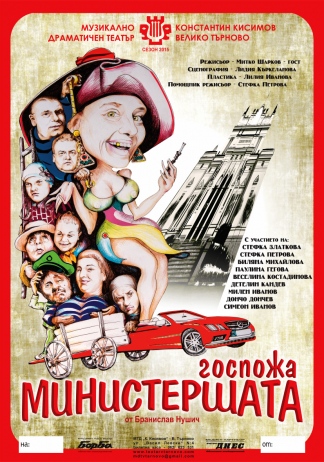 Музикално-драматичен театър „Константин Кисимов” - Велико Търново представя хумористичната театрална постановка „Госпожа Министершата” на 21.04.2015 г. от 18,30 ч. в Големия салон на НЧ „Развитие-1869” - гр. Дряново.